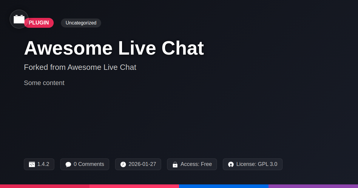 GrootMade is NOT affiliated with Awesome Live Chat or its original author. Awesome Live Chat™ is a trademark of its respective owner and use of it does not imply any endorsement or affiliation. This product has been forked under the GNU General Public License (GPL) and all non-GPL assets (such as proprietary images, fonts, and branding) have been removed. Distributing GPL-licensed code is 100% legal.