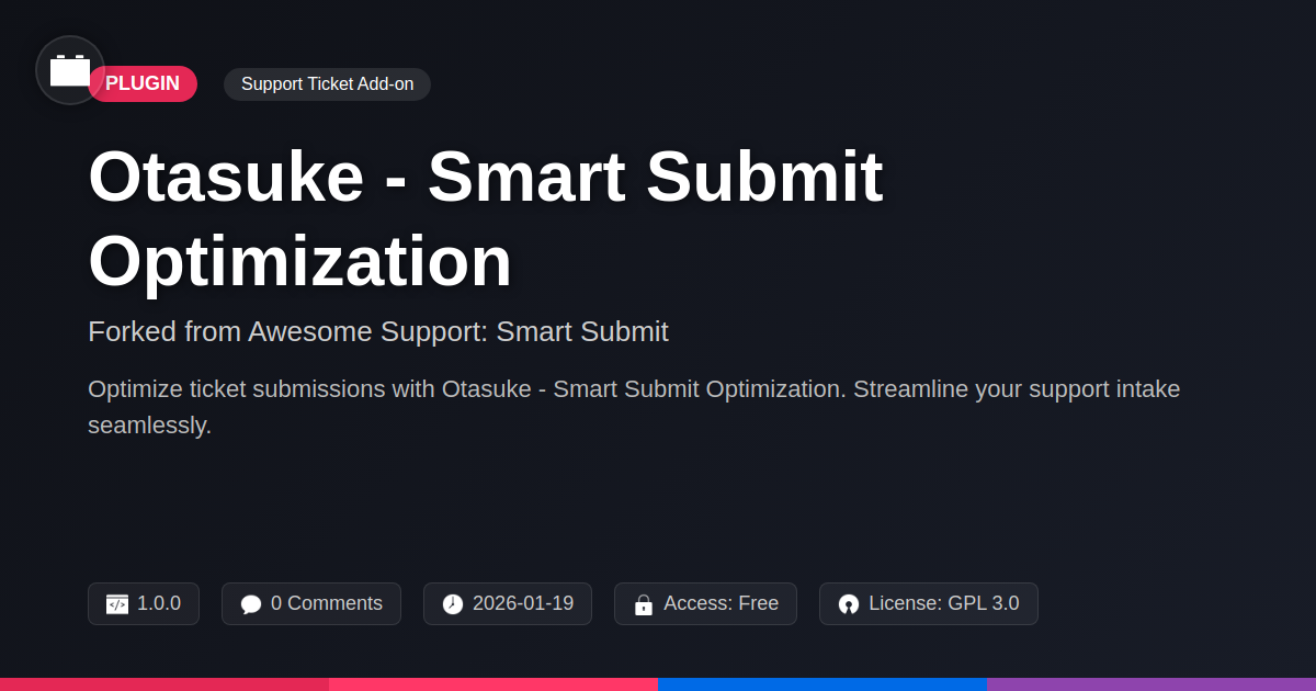 So, there you have it. Otasuke - Smart Submit Optimization isn't just another plugin; it's a well-crafted solution born from understanding the pains of modern digital support. We've taken a robust foundation and polished it with the kind of developer-centric foresight that turns tedious tasks into elegant processes. For those tirelessly building and managing online presences, the efficiency gains here are no joke. Think fewer hours spent deciphering cryptic support requests and more hours dedicated to, well, doing what you do best – building awesome things.