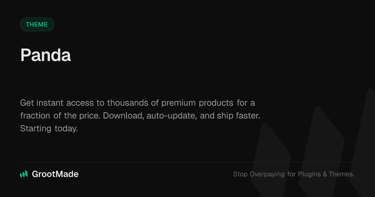 GrootMade is NOT affiliated with Panda or its original author. Panda™ is a trademark of its respective owner and use of it does not imply any endorsement or affiliation. This product has been forked under the GNU General Public License (GPL) and all non-GPL assets (such as proprietary images, fonts, and branding) have been removed. Distributing GPL-licensed code is 100% legal.