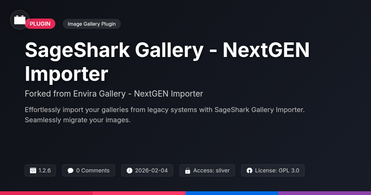So, you’ve stumbled upon the digital equivalent of a secret weapon for your image galleries. No more sleepless nights agonizing over migrating your precious visual assets, no more praying that a rogue export won’t turn your catalog into a pixelated disaster. SageShark Gallery - NextGEN Importer is here to whisper sweet nothings of organizational bliss into your developer ears. We get it. You’re busy building stunning digital experiences, not playing whack-a-mole with broken image links from a decade ago. This tool understands the hustle. It’s built for the pragmatist, the efficiency seeker, and yes, even the slightly cynical but highly skilled developer who knows good code when they see it (and knows bad code when it bites them). The allure of open-source isn't just about saving a few bucks; it's about transparency, community, and the sheer joy of not being beholden to a black box. By forking this project, we're not just offering a utility; we're inviting you to be part of a movement towards smarter, more accessible digital asset management. Think of it as upgrading from a flip phone to a smartphone – suddenly, everything just works. So, ditch the duct tape and the existential dread. Embrace the streamlined power, the community spirit, and the simple, elegant solution that is SageShark Gallery - NextGEN Importer. It’s time to let your galleries shine, without the usual fanfare of technical nightmares. Go on, make the switch. Your future self, and your clients, will thank you.