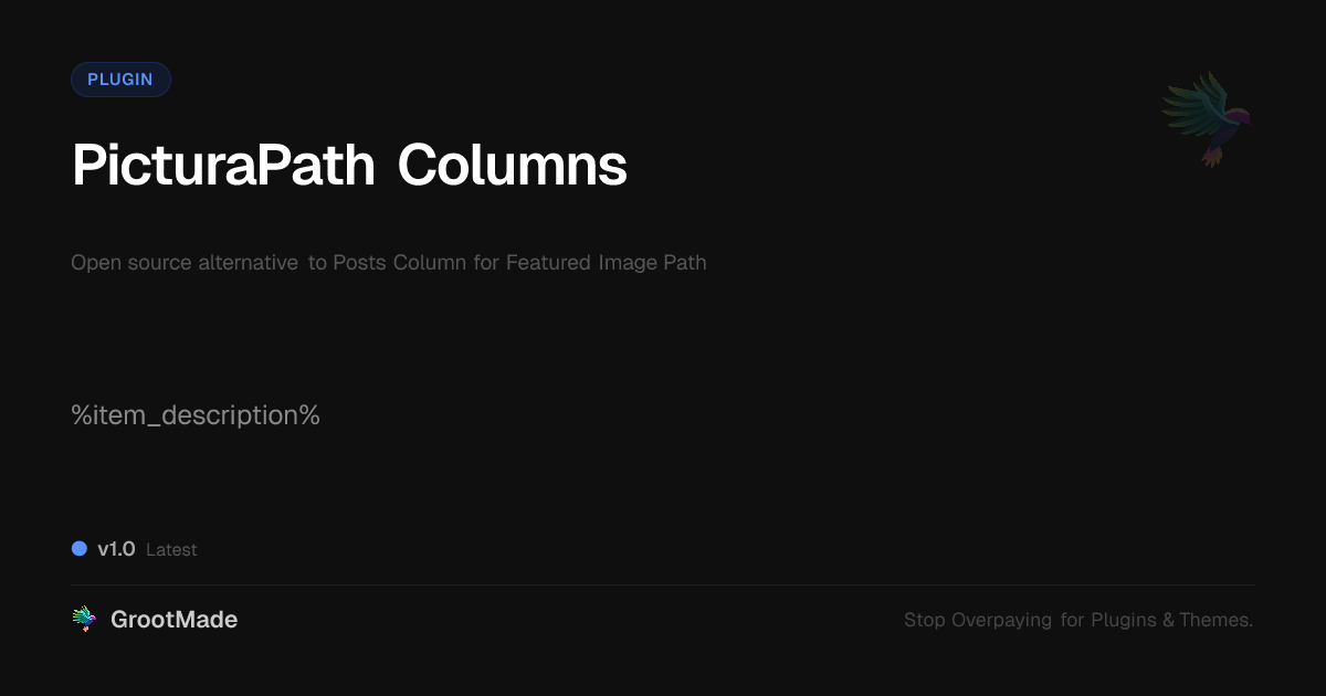 GrootMade is NOT affiliated with Posts Column for Featured Image Path or its original author. Posts Column for Featured Image Path™ is a trademark of its respective owner and use of it does not imply any endorsement or affiliation. This product has been forked under the GNU General Public License (GPL) and all non-GPL assets (such as proprietary images, fonts, and branding) have been removed. Distributing GPL-licensed code is 100% legal.