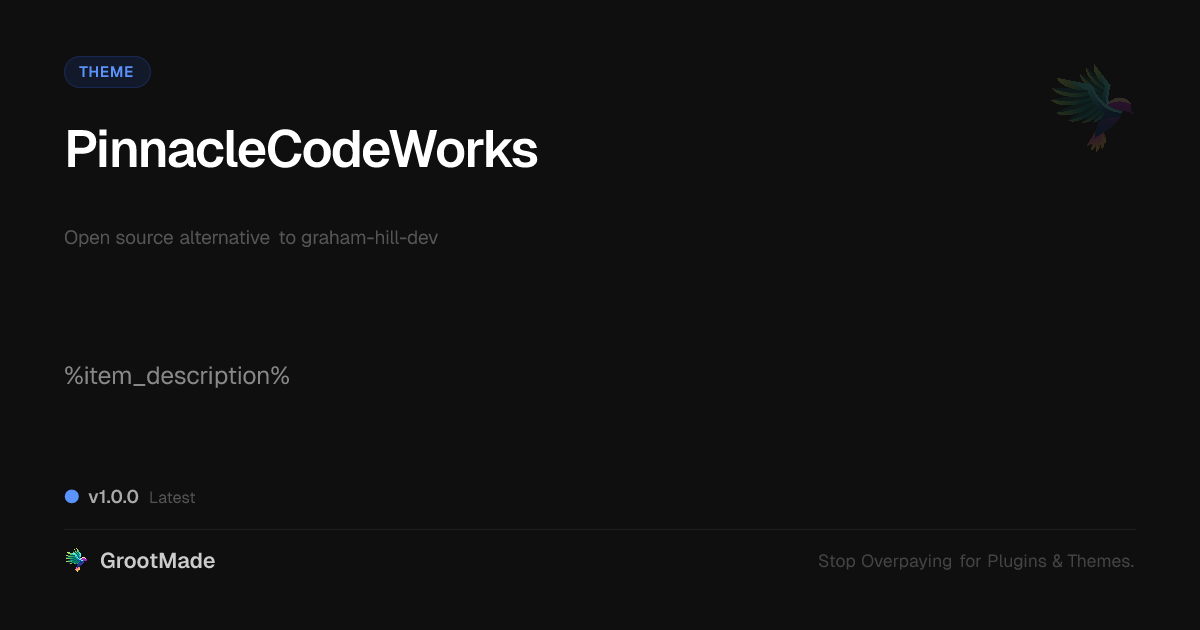 GrootMade is NOT affiliated with graham-hill-dev or its original author. graham-hill-dev™ is a trademark of its respective owner and use of it does not imply any endorsement or affiliation. This product has been forked under the GNU General Public License (GPL) and all non-GPL assets (such as proprietary images, fonts, and branding) have been removed. Distributing GPL-licensed code is 100% legal.