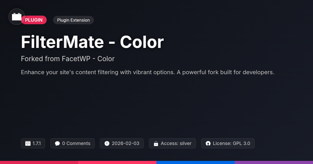 Let's be honest, we've all been there. You've got a killer collection of blog posts, an e-commerce empire, or a portfolio that's bursting with genius. But can your visitors actually find anything without resorting to a blood sacrifice? If your site's search and filtering feels more like a guessing game than a user-friendly experience, you're probably losing valuable engagement (and potential customers). We get it. You're a developer, an agency, or a champion of the open-source world, and you demand tools that are powerful, flexible, and don't come with a lecturing tone. You need something that works, something you can bend to your will without breaking it, and something that respects the collaborative spirit of software. Well, buckle up, buttercups, because we’ve taken a top-tier filtering engine, given it a fresh coat of paint (and maybe some subtle, yet powerful, enhancements), and presented it as FilterMate - Color. It’s built on a foundation you trust, a solid codebase that’s been battle-tested, much like a vintage arcade game that still kicks today's fancy graphics' butt. Think of it as inheriting a legendary race car, but we've tinkered with the engine, polished the chassis, and maybe added a turbocharger for good measure. It’s for those who appreciate the craftsmanship of a well-built tool but also want the freedom to put their own signature on it. Ready to ditch the content chaos and embrace sublime findability?