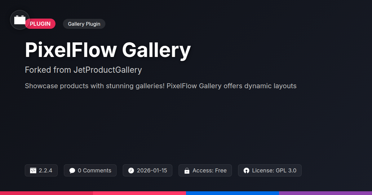So there you have it. PixelFlow Gallery, born from the solid foundations of JetProductGallery, isn't just another plugin to clutter your dashboard. It's the digital equivalent of giving your product pages a superhero cape, a witty monologue, and the ability to perform impossible feats of visual allure. You, the developer, the agency wizardry in human form, the open-source evangelist who secretly loves a good, well-built tool, now have a gallery solution that speaks your language. It’s not about slapping a few images on a page and calling it a day; it’s about crafting an experience. An experience that’s as robust under the hood as it is stunning on the surface. Forget those clunky, uninspired galleries that make visitors question their life choices. PixelFlow Gallery is here to inject some much-needed personality and performance into your product showcases. It's the freedom to build exactly what you envision, without being boxed in by limitations or bloated features you’ll never use. So, go ahead, experiment, push the boundaries, and make those product pages sing. Because with PixelFlow Gallery, your visual storytelling just got a whole lot more interesting, and a darn sight more effective.