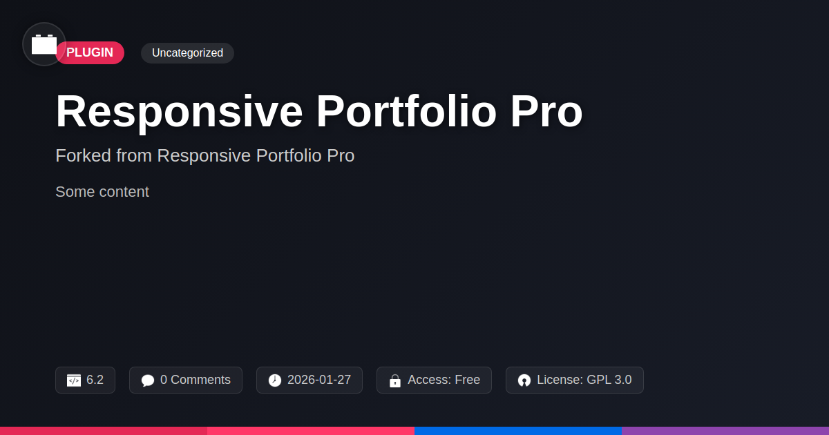 GrootMade is NOT affiliated with Responsive Portfolio Pro or its original author. Responsive Portfolio Pro™ is a trademark of its respective owner and use of it does not imply any endorsement or affiliation. This product has been forked under the GNU General Public License (GPL) and all non-GPL assets (such as proprietary images, fonts, and branding) have been removed. Distributing GPL-licensed code is 100% legal.