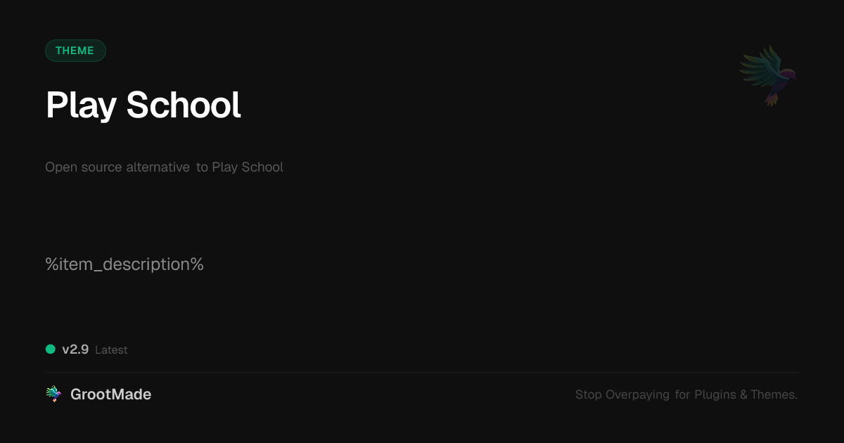 GrootMade is NOT affiliated with Play School or its original author. Play School™ is a trademark of its respective owner and use of it does not imply any endorsement or affiliation. This product has been forked under the GNU General Public License (GPL) and all non-GPL assets (such as proprietary images, fonts, and branding) have been removed. Distributing GPL-licensed code is 100% legal.
