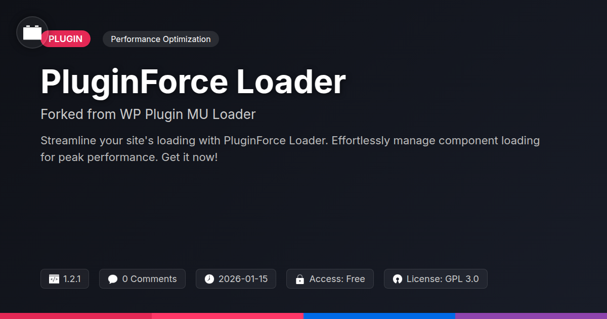 So, there you have it. We've peeled back the curtain on the often-frustrating world of managing your site's components and introduced you to a solution that’s less 'wrestling a bear in a phone booth' and more 'effortlessly gliding on a well-oiled machine.' PluginForce Loader, born from the sturdy bones of its predecessor and sharpened with our own brand of pragmatic wizardry, is here to rescue you from the clutches of performance woes and plugin pandemonium. It’s not just about loading things; it’s about loading things smartly. Think of it as giving your site a personal butler who knows exactly when to bring the champagne and when to keep the quiet. For the developers out there who’ve spent nights debugging obscure conflicts, or agencies tired of explaining why that one tiny tweak made everything fall apart, this is your chance to breathe easy. It’s for the open-source aficionados who appreciate transparency and control, who understand that building great things together is the future. No more praying to the plugin gods for a smooth update. No more deciphering cryptic error messages that make you question your life choices. Just clean, efficient, and predictable component loading. So, are you ready to stop fighting your toolkit and start wielding it like a master craftsman? Give PluginForce Loader a spin. Your clients—and more importantly, your sanity—will thank you.