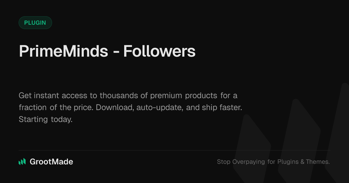 GrootMade is NOT affiliated with Ultimate Member - Followers or its original author. Ultimate Member - Followers™ is a trademark of its respective owner and use of it does not imply any endorsement or affiliation. This product has been forked under the GNU General Public License (GPL) and all non-GPL assets (such as proprietary images, fonts, and branding) have been removed. Distributing GPL-licensed code is 100% legal.
