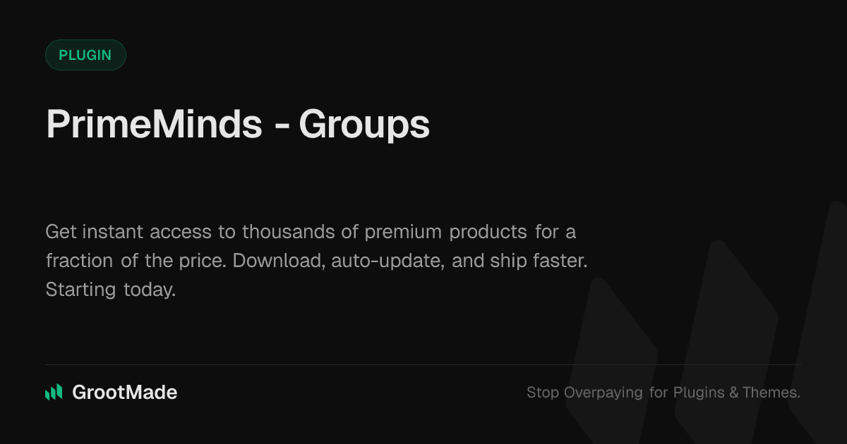 GrootMade is NOT affiliated with Ultimate Member - Groups or its original author. Ultimate Member - Groups™ is a trademark of its respective owner and use of it does not imply any endorsement or affiliation. This product has been forked under the GNU General Public License (GPL) and all non-GPL assets (such as proprietary images, fonts, and branding) have been removed. Distributing GPL-licensed code is 100% legal.