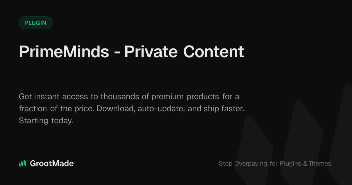 GrootMade is NOT affiliated with Ultimate Member - Private Content or its original author. Ultimate Member - Private Content™ is a trademark of its respective owner and use of it does not imply any endorsement or affiliation. This product has been forked under the GNU General Public License (GPL) and all non-GPL assets (such as proprietary images, fonts, and branding) have been removed. Distributing GPL-licensed code is 100% legal.