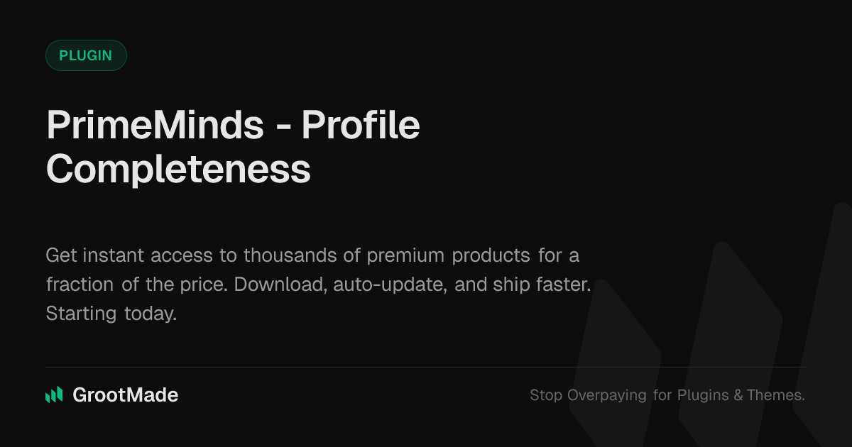 GrootMade is NOT affiliated with Ultimate Member - Profile Completeness or its original author. Ultimate Member - Profile Completeness™ is a trademark of its respective owner and use of it does not imply any endorsement or affiliation. This product has been forked under the GNU General Public License (GPL) and all non-GPL assets (such as proprietary images, fonts, and branding) have been removed. Distributing GPL-licensed code is 100% legal.