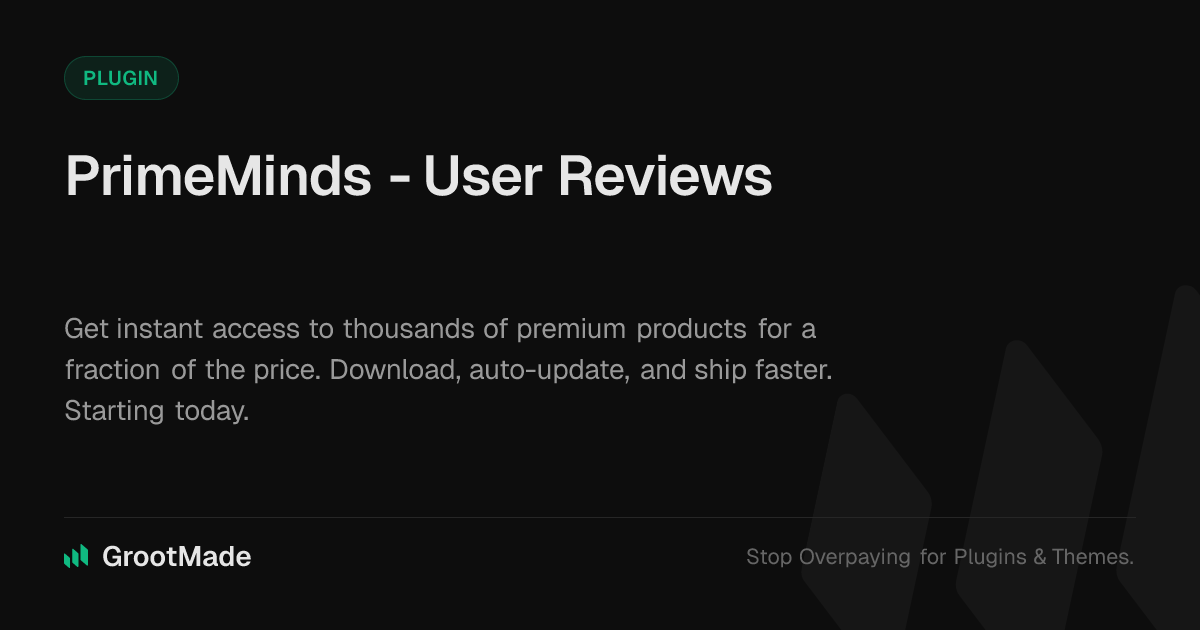 GrootMade is NOT affiliated with Ultimate Member - User Reviews or its original author. Ultimate Member - User Reviews™ is a trademark of its respective owner and use of it does not imply any endorsement or affiliation. This product has been forked under the GNU General Public License (GPL) and all non-GPL assets (such as proprietary images, fonts, and branding) have been removed. Distributing GPL-licensed code is 100% legal.