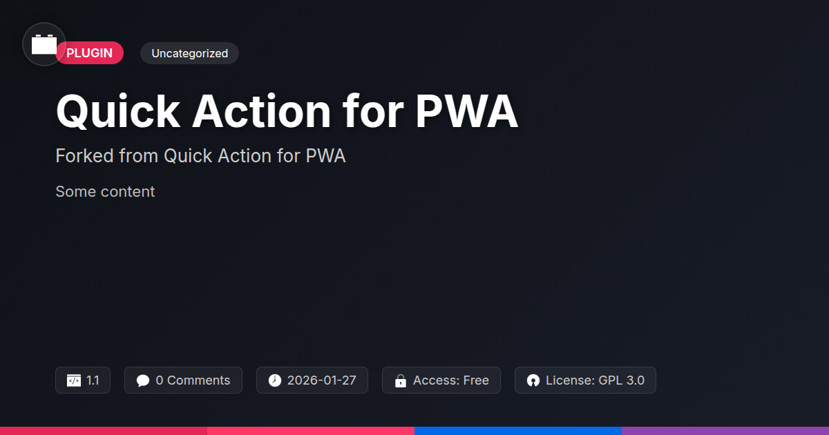GrootMade is NOT affiliated with Quick Action for PWA or its original author. Quick Action for PWA™ is a trademark of its respective owner and use of it does not imply any endorsement or affiliation. This product has been forked under the GNU General Public License (GPL) and all non-GPL assets (such as proprietary images, fonts, and branding) have been removed. Distributing GPL-licensed code is 100% legal.