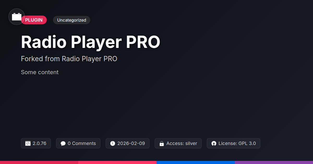 GrootMade is NOT affiliated with Radio Player PRO or its original author. Radio Player PRO™ is a trademark of its respective owner and use of it does not imply any endorsement or affiliation. This product has been forked under the GNU General Public License (GPL) and all non-GPL assets (such as proprietary images, fonts, and branding) have been removed. Distributing GPL-licensed code is 100% legal.