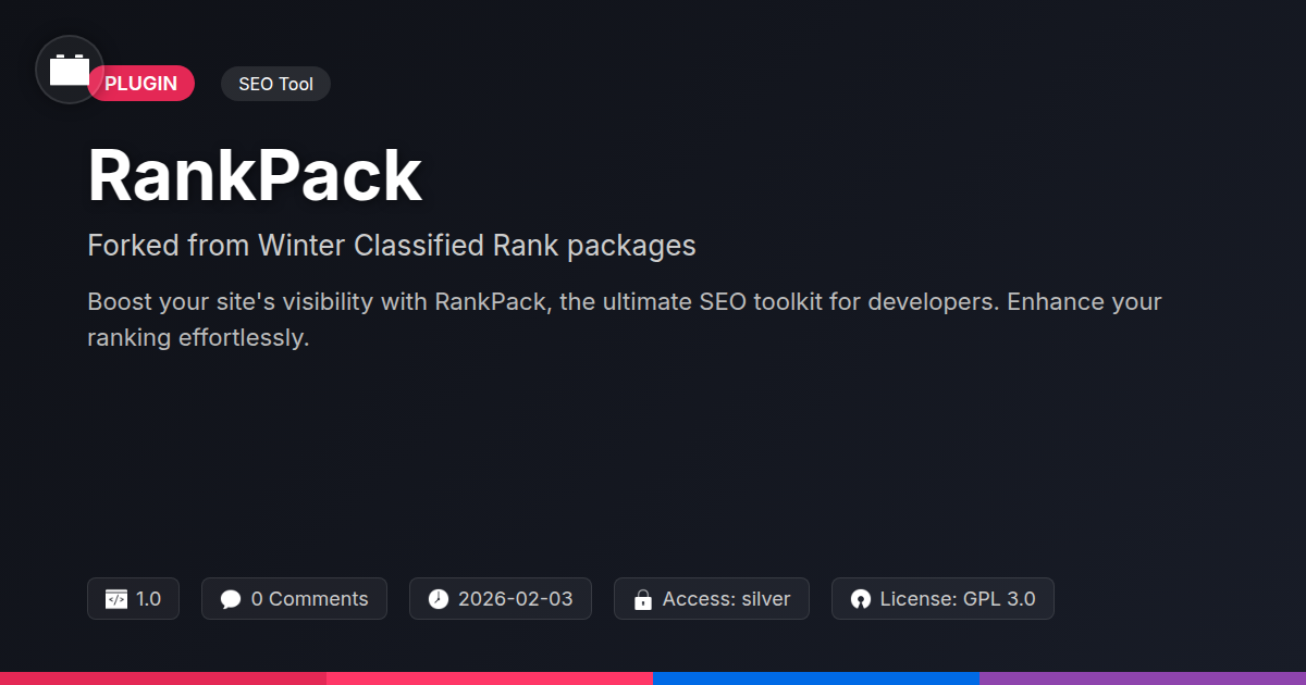 Tired of your brilliant code languishing in the digital doldrums, undiscovered and unloved by search engines? Do you spend more time wrestling with algorithms than crafting elegant solutions? If you're a developer, an agency wrangling multiple client sites, or just an open-source aficionado who believes in sharing the digital wealth, this is for you. We get it. You pour your heart and soul into building stunning digital experiences, only to watch them get buried faster than a poorly optimized image. It’s like building a rocket ship and leaving it in your garage. We've all been there, staring at analytics that resemble a flatline on a cheap medical drama. The problem isn't your skill; it's the opaque, often frustrating, nature of getting noticed online. You're a builder, a creator, not a black-hat hocus-pocus artist. You need tools that understand your craft, that work with your development process, not against it. Enter RankPack. Born from a legacy of robust ranking utilities, this is the evolution you’ve been waiting for. Think of it as your secret weapon, meticulously crafted to amplify your digital presence without forcing you to become a full-time SEO guru. We’ve taken the foundational brilliance of time-tested ranking tools and given them a modern polish, specifically for those who speak fluent code and appreciate a bit of dry wit. Say goodbye to guesswork and hello to a streamlined approach that lets you focus on what you do best: building amazing things.