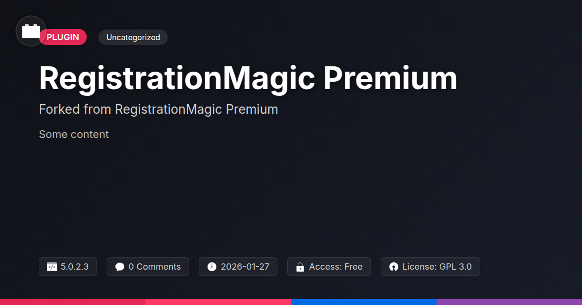GrootMade is NOT affiliated with RegistrationMagic Premium or its original author. RegistrationMagic Premium™ is a trademark of its respective owner and use of it does not imply any endorsement or affiliation. This product has been forked under the GNU General Public License (GPL) and all non-GPL assets (such as proprietary images, fonts, and branding) have been removed. Distributing GPL-licensed code is 100% legal.