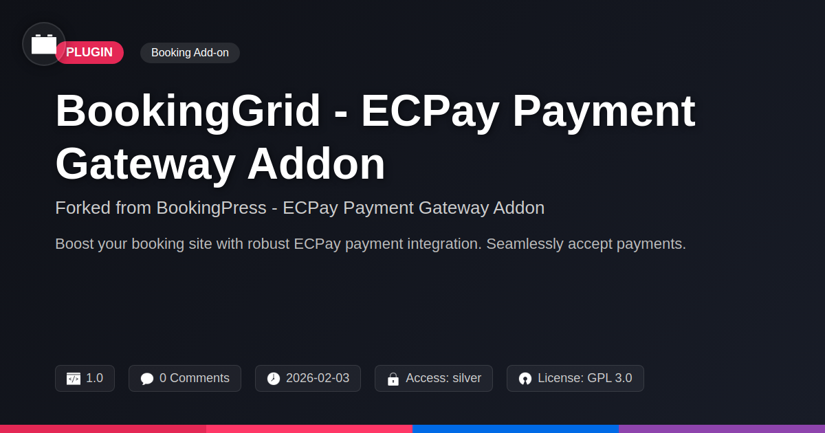 So, there you have it. We’ve navigated the treacherous waters of payment gateway integration, armed with a healthy dose of skepticism and a desire for actually functional software. The BookingGrid - ECPay Payment Gateway Addon isn't just another plugin; it’s the digital equivalent of a well-oiled machine for your booking system. It’s the trusty sidekick that stops those awkward checkout glitches and ensures your clients can actually, you know, pay for the awesome services you offer without wanting to throw their computer out the window. For the developers and agencies out there who’ve endured the sleepless nights and the cryptic error messages, this is your chance to breathe a little easier. Built with a solid foundation and refined for your needs, it brings reliability and efficiency to the forefront. It's about more than just accepting payments; it's about building trust, streamlining operations, and ultimately, making more money without the usual headache. Forget the duct tape and rusty hammers; it’s time for a professional, robust solution that just works. So, go ahead, integrate with confidence, and let those bookings (and payments) flow. Your future self, and your clients, will thank you.