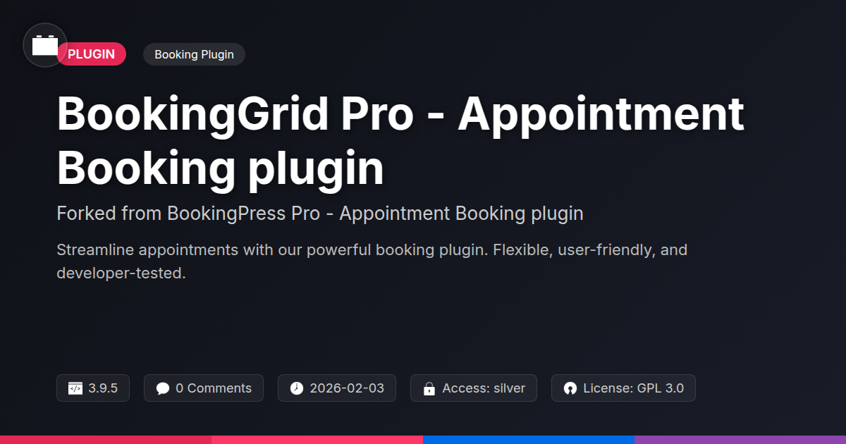 GrootMade is NOT affiliated with BookingPress Pro - Appointment Booking plugin or its original author. BookingPress Pro - Appointment Booking plugin™ is a trademark of its respective owner and use of it does not imply any endorsement or affiliation. This product has been forked under the GNU General Public License (GPL) and all non-GPL assets (such as proprietary images, fonts, and branding) have been removed. Distributing GPL-licensed code is 100% legal.