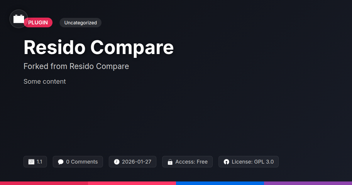 GrootMade is NOT affiliated with Resido Compare or its original author. Resido Compare™ is a trademark of its respective owner and use of it does not imply any endorsement or affiliation. This product has been forked under the GNU General Public License (GPL) and all non-GPL assets (such as proprietary images, fonts, and branding) have been removed. Distributing GPL-licensed code is 100% legal.