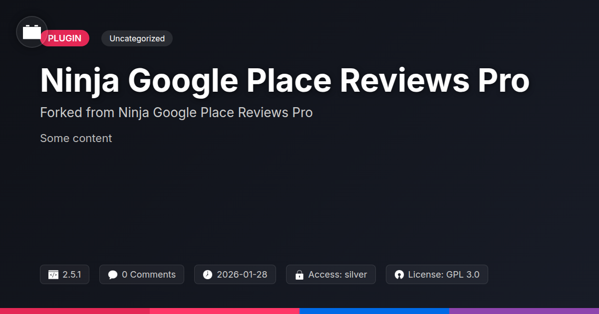 GrootMade is NOT affiliated with Ninja Google Place Reviews Pro or its original author. Ninja Google Place Reviews Pro™ is a trademark of its respective owner and use of it does not imply any endorsement or affiliation. This product has been forked under the GNU General Public License (GPL) and all non-GPL assets (such as proprietary images, fonts, and branding) have been removed. Distributing GPL-licensed code is 100% legal.