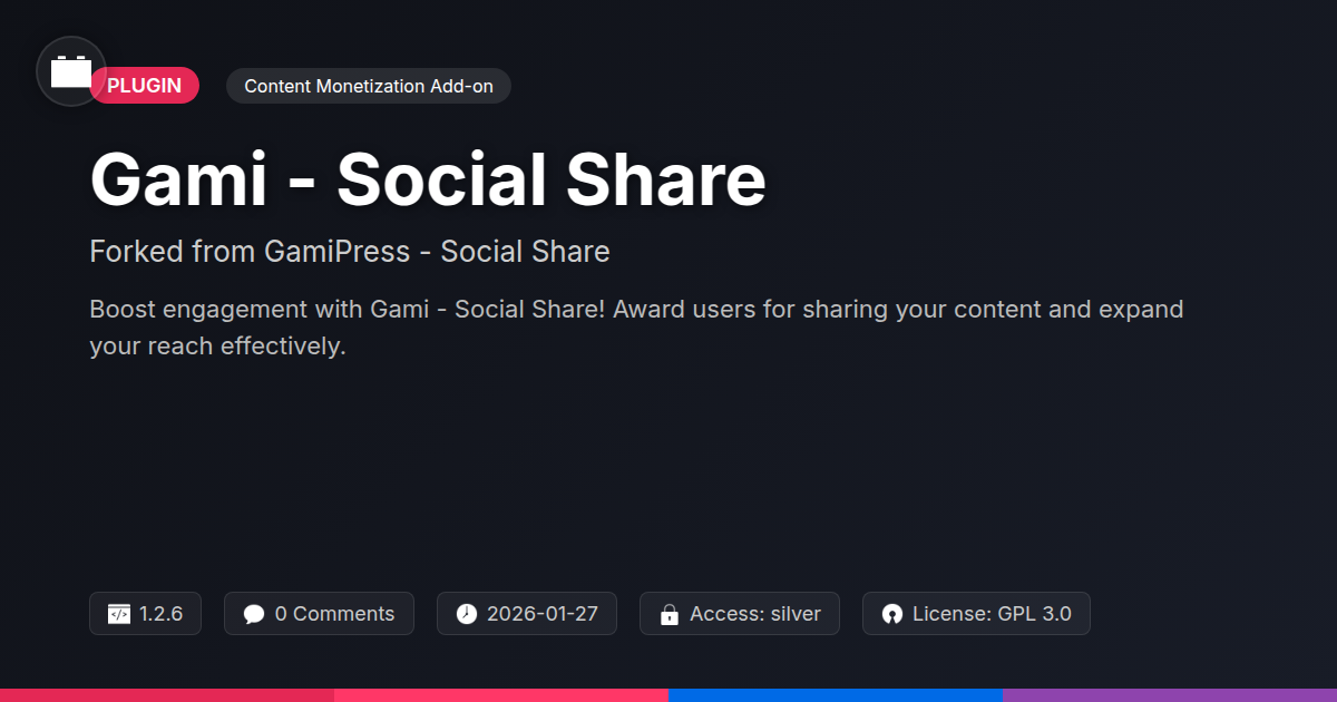 So, there you have it. We’ve navigated the often-treacherous waters of content promotion and emerged with a shining beacon: Gami - Social Share. For those of you who pride yourselves on innovation, efficiency, and maybe just a touch of digital mischief, this tool is your new best friend. It’s not just about slapping buttons on a page and hoping for the best. It’s about strategic engagement. It’s about understanding that sometimes, the best way to get people talking about your content is to give them a little nudge – a compelling reason to hit that share button. Think of it as bribing your audience with good karma (and perhaps a few points or badges, depending on your setup). For developers and agencies, this means happier clients, more traffic, and a reputation for delivering solutions that genuinely work. For the open-source aficionados, it’s a testament to how intelligent design and community spirit can create something truly valuable. It's about empowering your users, amplifying your reach, and ultimately, making your corner of the internet a little bit louder and a lot more engaging. So, go on, give your content the social boost it deserves. It’s time to stop shouting into the void and start building a viral buzz, one rewarding share at a time. After all, who wouldn’t want to be rewarded for doing you a favor?