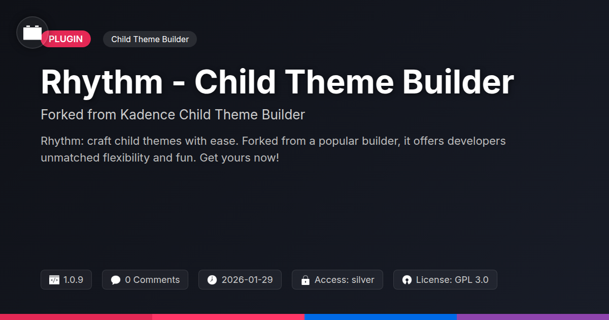 Tired of theme builder limitations? Yearn for customization without the existential dread? Good. Because you've stumbled upon something that might just make you weep with joy. Or at least grunt approvingly. Introducing Rhythm. It’s not just another child theme builder. It’s a glorious fork from a framework respected by… well, people who know things. Think of it as shedding the shackles of the mundane. We’re talking to you, the developers, the agencies, the open-source aficionados who secretly hoard curly braces. Forget the endless, soul-crushing tweaks in the visual editor. Rhythm is your digital clay. It’s your gateway to crafting themes that don’t just look good; they good. Ready to stop fighting your tools and start building something magnificent?