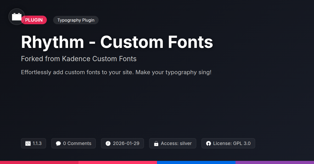 Are you tired of the same old default typefaces? Does your online presence feel a little… predictable? Every website deserves a voice, a distinct personality. Standard fonts can often blend into the background. They don't always capture the essence of your brand. You crave something more. Something that truly expresses your unique style. Introducing Rhythm. It's a new way to bring character to your digital canvas. This tool builds upon a robust foundation. It’s a thoughtfully developed fork of a beloved custom font solution. We wanted to offer a fresh perspective. A refined experience for managing your typography. Get ready to explore a world of design possibilities. Let your creativity flow. Make your mark with fonts that sing.