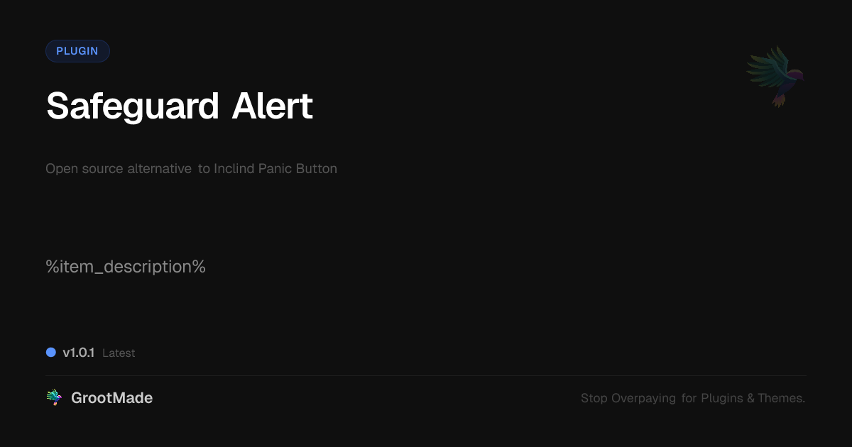 GrootMade is NOT affiliated with Inclind Panic Button or its original author. Inclind Panic Button™ is a trademark of its respective owner and use of it does not imply any endorsement or affiliation. This product has been forked under the GNU General Public License (GPL) and all non-GPL assets (such as proprietary images, fonts, and branding) have been removed. Distributing GPL-licensed code is 100% legal.