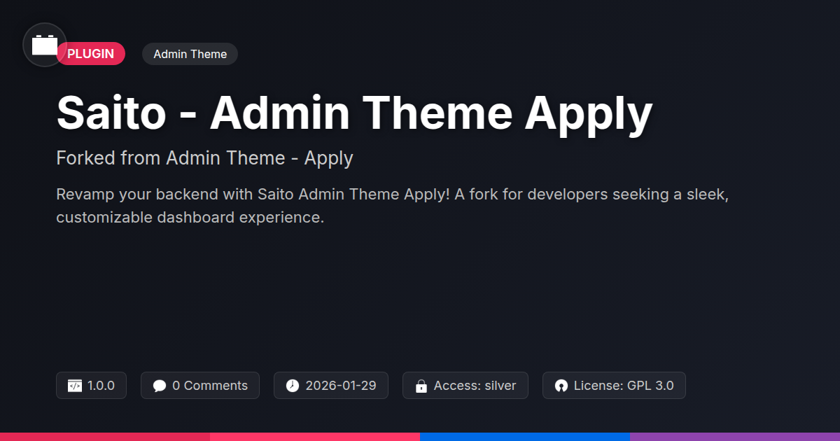 Enter Saito - Admin Theme Apply, a fork born from the brilliant minds behind the original Admin Theme - Apply. We've taken a solid foundation and given it a fresh coat of paint, sprinkled in some new tricks, and polished it to a gleam. This isn't just another facelift; it's a complete overhaul of your admin experience, designed for those who appreciate elegance, efficiency, and a touch of playful rebellion against the mundane. For the discerning developers, the agency wizards, and the open-source evangelists who believe that even the backend deserves a standing ovation, Saito is your new best friend. Forget clunky interfaces and convoluted navigation. We're here to serve you a sleek, intuitive, and downright enjoyable administrative environment. Get ready to make your backend as impressive as your frontend. Let's dive in and see how Saito can elevate your digital domain, one beautifully crafted screen at a time.