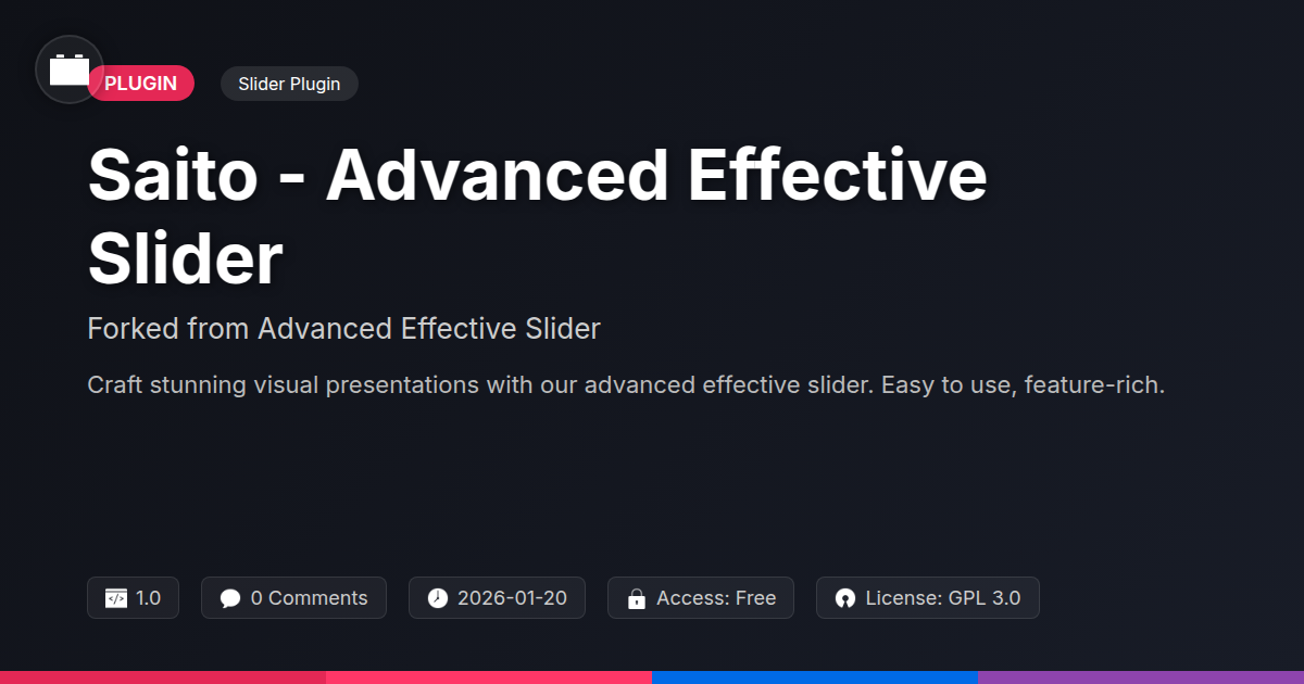So, there you have it. Saito isn't just another button to click or a fancy template to shoehorn your content into. It's a meticulously crafted tool for those who appreciate the finer points of web development and design, for those who believe that even something as seemingly simple as a slider can be a work of art and a powerhouse of engagement. You've seen how it slays the dragons of blandness that plague so many websites, offering a level of customization that would make lesser plugins weep. For you developers out there, it means less time wrestling with intricate CSS and JS, and more time doing what you do best: building awesome things. And for your clients? Well, they get a visual experience that doesn't just show them your client's message, it makes them feel it. Agencies, imagine the premium you can charge for presentations that genuinely captivate. Open-source aficionados, you get a robust, community-spirit-infused solution that’s constantly pushing boundaries. It’s the evolution you’ve been waiting for, the upgrade that’s not an upgrade but a revolution in how you display your most important content. Stop settling for slides that just… slide. Make them soar. Make them sing. Make them Saito. Your audience, your clients, and frankly, your sanity, will thank you for it. Now go forth and dazzle!
