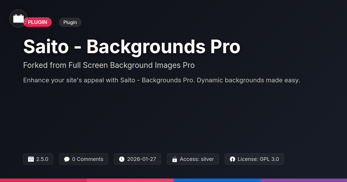 Tired of your site looking like it was designed in the dial-up era, with bland backgrounds that make users want to click away faster than you can say 'buffering'? Does your current setup make you feel like you're wrestling a bear just to get a decent-looking background image to stick? Fret no more, fellow code wranglers and pixel pushers! We're diving headfirst into Saito - Backgrounds Pro, a glorious fork from the legendary Full Screen Background Images Pro. Think of it as the sequel you actually wanted, with all the original awesomeness, plus a few sprinkles of open-source magic. This isn't just about slapping a pretty picture behind your text; it's about crafting an immersive experience that draws your visitors in and makes them say, 'Wow, this site actually looks and feels good.' We're talking about giving your content the stage it deserves, with backgrounds that are as dynamic and responsive as your latest framework. For those who appreciate robust functionality without the bloat, and for the agencies aiming to deliver truly show-stopping client sites, this tool is about to become your new digital best friend. Get ready to ditch the drab and embrace the fab, because your website's background is about to get a serious, no-nonsense upgrade.