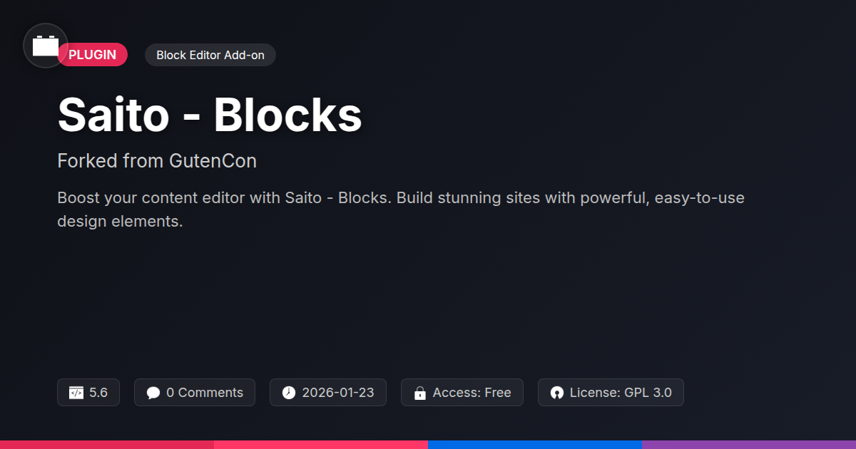 Tired of the same old block-party playlist? Saito - Blocks serves up a smorgasbord of custom content blocks, each designed to make your editor feel less like a kindergarten art class and more like a master craftsman's workshop. We’re talking blocks that do more.