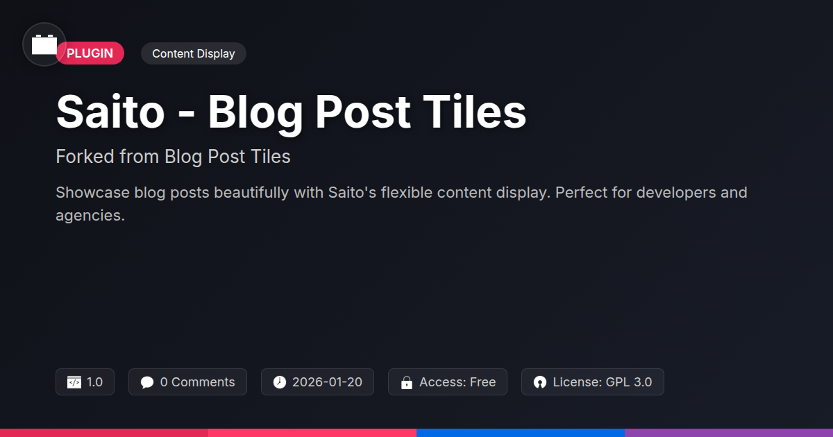 Remember that feeling when you find that one perfect tool that just works? The one that seamlessly integrates, offers unparalleled control, and makes your job significantly easier (and more enjoyable)? That’s the Saito experience. It’s about taking your hard-earned content – your insights, your stories, your product showcases – and giving them the visual gravitas they deserve. It's about transforming passive readers into engaged users, simply by making your site more inviting and dynamic. No more monotonous archives, no more forgettable layouts. It's time to give your content the digital stage it's been craving. So, go forth, experiment, and let Saito - Blog Post Tiles help you tell your stories in a way that captivates and converts. Happy tiling!