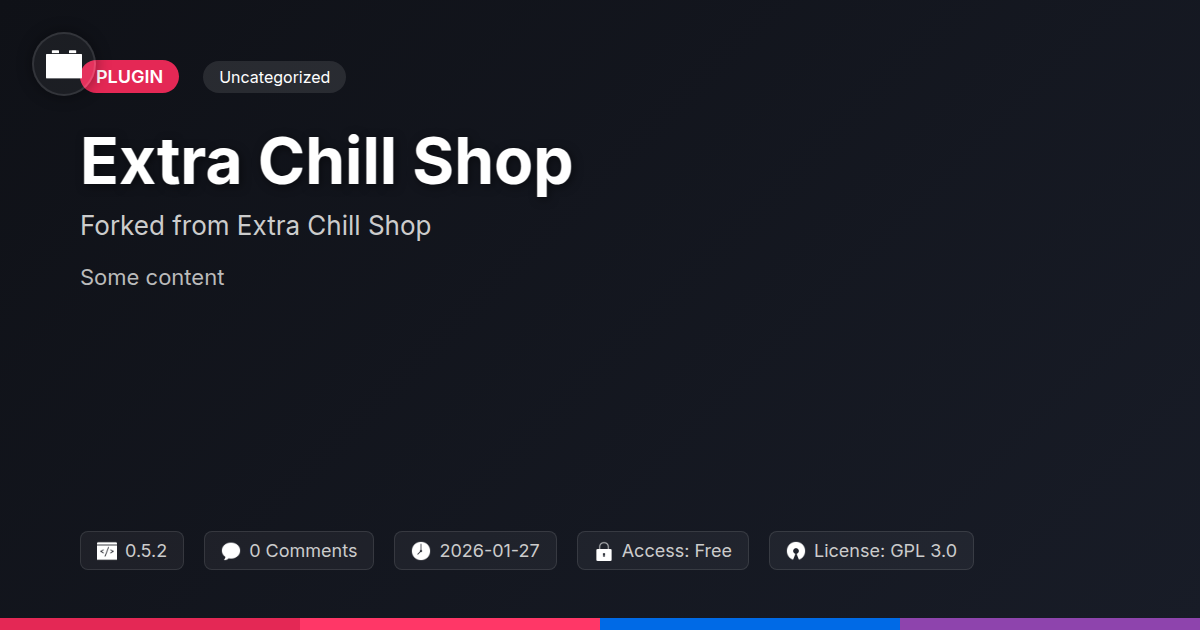 GrootMade is NOT affiliated with Extra Chill Shop or its original author. Extra Chill Shop™ is a trademark of its respective owner and use of it does not imply any endorsement or affiliation. This product has been forked under the GNU General Public License (GPL) and all non-GPL assets (such as proprietary images, fonts, and branding) have been removed. Distributing GPL-licensed code is 100% legal.