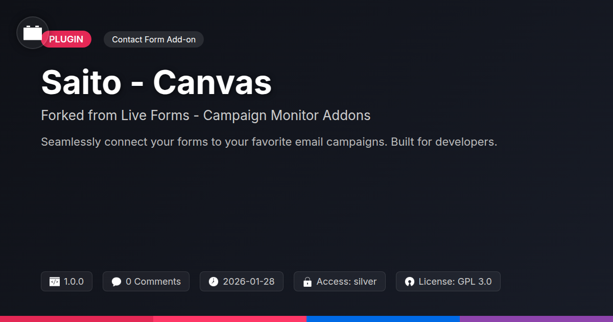 So, there you have it. Saito - Canvas isn't just another plugin; it's the digital handshake your forms have been begging for. It’s the bridge that connects your website's conversations directly to the engine room of your email marketing. For all you developers out there who appreciate elegant code and the freedom of open source, this is the fork you didn't know you were waiting for. Remember the days of manually sifting through submission emails, praying you didn't miss a gem? Yeah, neither do we anymore, thanks to tools like this.