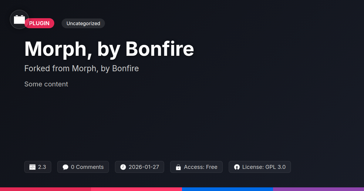 GrootMade is NOT affiliated with Morph, by Bonfire or its original author. Morph, by Bonfire™ is a trademark of its respective owner and use of it does not imply any endorsement or affiliation. This product has been forked under the GNU General Public License (GPL) and all non-GPL assets (such as proprietary images, fonts, and branding) have been removed. Distributing GPL-licensed code is 100% legal.