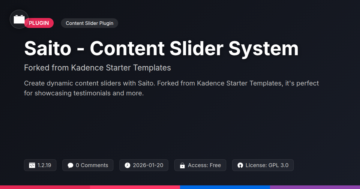 So, there you have it. Saito - Content Slider System. It’s not just another pretty slider plugin; it’s a thoughtfully forked, open-source solution designed by and for the folks who actually build the web. If you’ve ever wrestled with a slider that felt more like a digital wrestling match than a feature, or if you long for the days when adding dynamic content didn't require a blood oath and a degree in arcane coding, Saito is your new ally. It’s born from the solid lineage of Kadence Starter Templates, meaning you get a robust, stable foundation to build upon, without the baggage of proprietary systems. For the developers out there, this means extensibility and a deep understanding of how it works. For the agencies, it means delivering slick, polished results to your clients without the headache of a temperamental tool. And for the open-source purists, well, you already know the score – transparency, community, and the freedom to shape your digital destiny.