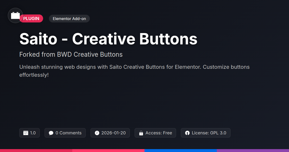 GrootMade is NOT affiliated with BWD Creative Buttons or its original author. BWD Creative Buttons™ is a trademark of its respective owner and use of it does not imply any endorsement or affiliation. This product has been forked under the GNU General Public License (GPL) and all non-GPL assets (such as proprietary images, fonts, and branding) have been removed. Distributing GPL-licensed code is 100% legal.