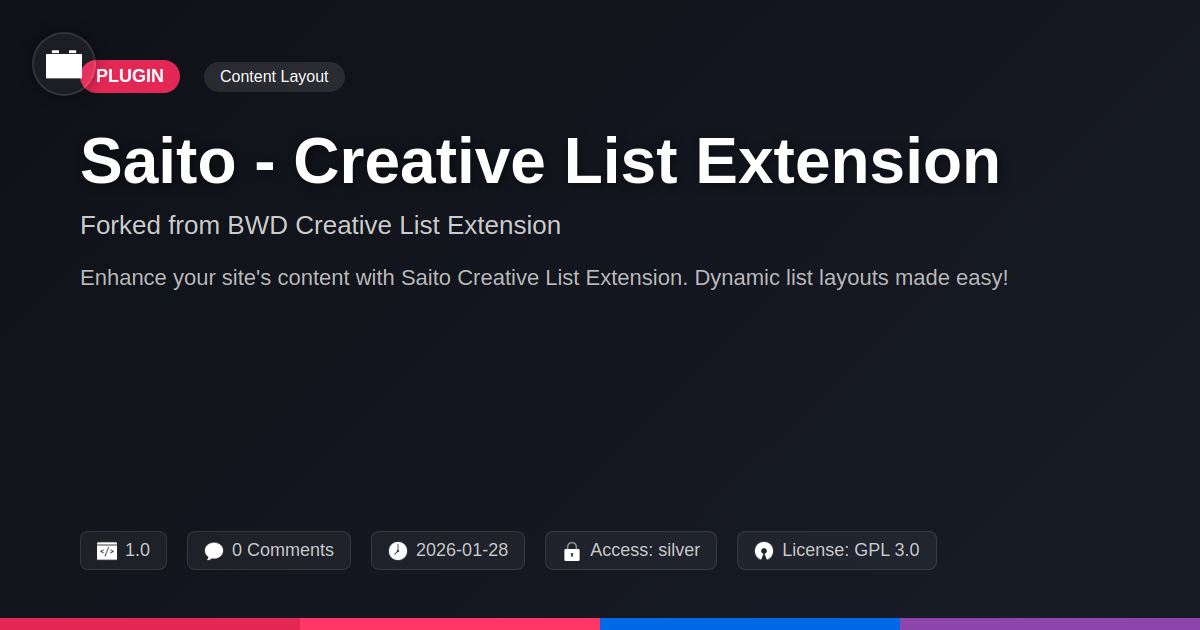 As a seasoned web developer, you see predictable lists. They lack impact. Your clients deserve more. Your own sites need them. Saito Creative List Extension offers a solution. It’s a strong fork from a reputable origin. It liberates your website from dull presentations. Forget wrestling with custom code. This tool lets you build lists that are design statements. Imagine engaging layouts. Visualize dynamic effects. Create a user experience that captivates. It’s about clarity. It’s about style. Make information impossible to ignore. If your lists are currently uninspired, prepare for transformation. Elevate your content. Acknowledge the solid groundwork laid by its predecessors. This extension refines that power. It’s about making your information shine.