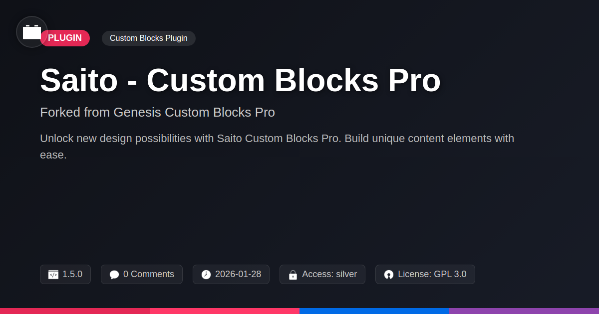 So, there you have it. Saito - Custom Blocks Pro isn't just another tool to clutter your plugins folder; it's a carefully crafted enhancement for those who refuse to settle for mediocrity. If you’ve ever found yourself staring blankly at a basic block, wondering why your content can’t have the same flair as that slick site you saw on a design blog, then Saito is your answer. For the developers who speak in code and semicolons, it’s about reclaiming granular control with an intuitive workflow. For the agencies balancing client demands with creative vision, it’s about delivering pixel-perfect designs without sacrificing sanity or deadlines. And for the passionate open-source community, it’s about robust, transparent tools that empower everyone to build better. Think of it this way: why would you use a butter knife to perform surgery? You wouldn't. You’d use the right tool. Saito is that surgical instrument for your content. It’s for the discerning builder who understands that the devil, and the magic, is in the details. So, go ahead, download Saito, and start crafting those truly unique, show-stopping pages. Your website, your clients, and frankly, your own sense of design pride, will thank you for it.
