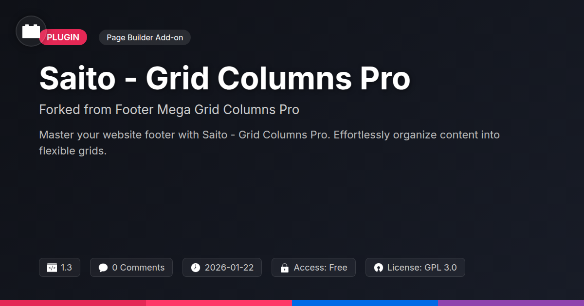 So, there you have it. We've journeyed through the often-overlooked territory of the website footer, proving that it’s far more than just a place for your name and a ghost emoji. You’ve seen how Saito - Grid Columns Pro, a clever evolution of a proven concept, empowers you – the discerning developer, the agency guru, the open-source enthusiast – to transform this final frontier of your site into a functional, engaging, and visually appealing masterpiece. Forget the days of clunky, single-column text dumps that make users squint. With this tool, you’re armed with the power to create sophisticated, responsive grid layouts that not only organize your essential information but also enhance your site’s overall user experience and brand presentation. Whether you’re aiming for a mega-menu-style navigation in your footer, a clean display of contact details, a visually striking showcase of partner logos, or a well-structured sitemap, Saito - Grid Columns Pro delivers with remarkable ease and flexibility. And for those of you who appreciate the beauty of collaborative development and the transparency of open-source, this plugin offers a robust, community-inspired solution. It respects its heritage while forging its own path, providing you with a reliable and continuously evolving tool. Stop treating your footer like an unwanted guest and start inviting it to the design party. Give your users a clear, organized, and aesthetically pleasing final impression. It’s time to unleash your footer’s true potential, one perfectly placed column at a time.