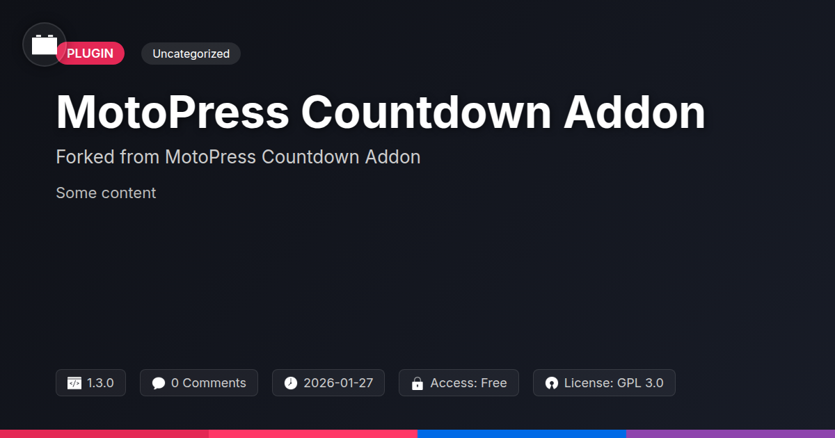 GrootMade is NOT affiliated with MotoPress Countdown Addon or its original author. MotoPress Countdown Addon™ is a trademark of its respective owner and use of it does not imply any endorsement or affiliation. This product has been forked under the GNU General Public License (GPL) and all non-GPL assets (such as proprietary images, fonts, and branding) have been removed. Distributing GPL-licensed code is 100% legal.