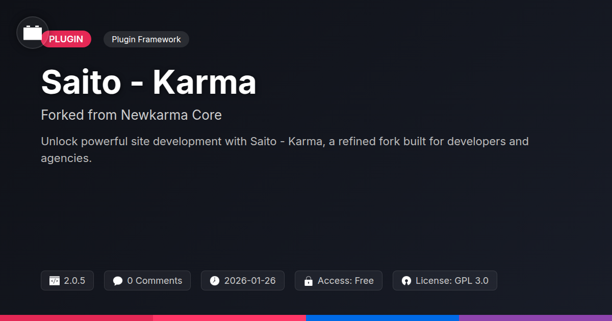That's where Saito - Karma slides in. It's a natural evolution. Built on a solid foundation. Think of it as a 'forked' masterpiece. We took what was good. We made it better. Developers and agencies deserve better tools. You demand advanced control. You crave true flexibility. Your sanity is paramount.