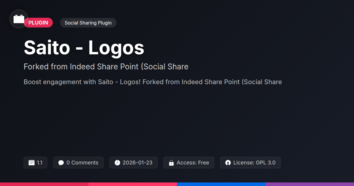 Tired of your content languishing in the digital abyss, only to be discovered by tumbleweeds and the occasional rogue bot? Do you dream of a world where your brilliant articles and amazing resources actually get shared? Well, stop dreaming and start sharing, because Saito - Logos is here to drag your content screaming into the social spotlight. For all you code-slinging wizards, agency maestros who juggle client demands like a circus performer, and the noble knights of open-source, we present a tool that’s less about reinventing the wheel and more about giving that wheel some seriously stylish racing stripes and a nitro boost. This isn't just another add-on; it's a meticulously crafted fork, born from a proven lineage, designed to make your content so sharable it practically begs to be forwarded. We're talking about turning passive scrollers into active evangelists, all while maintaining the sleek aesthetics your design-conscious clients (and your own discerning eye) demand. Forget the clunky, the generic, the ones that look like they were designed by a committee of beige enthusiasts. Saito - Logos is here to inject some much-needed flair and functionality into your site's social sharing strategy. So, buckle up, buttercups, because we're about to dive into how this bad boy can transform your online presence from 'meh' to 'OMG, share this everywhere!'