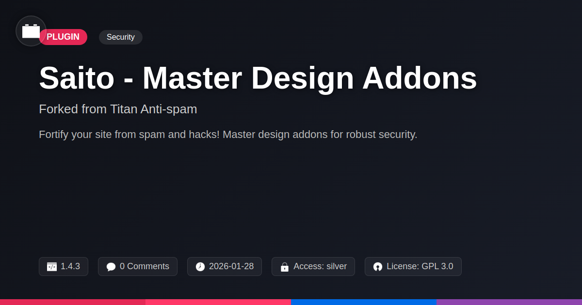 So, there you have it. You’ve peered into the murky depths of digital threats and emerged with a champion: Saito - Master Design Addons. No more sleepless nights worrying about comment spam turning your site into a digital junkyard, no more heart palpitations every time someone tries to brute-force their way into your admin panel. Saito isn't just another security plugin; it's your silent, vigilant guardian, the digital equivalent of a perfectly trained guard dog that never barks unnecessarily but always gets the job done. We’ve talked about the relentless onslaught of bots and hackers, the sheer audacity of their attempts to deface your digital masterpiece. And then we introduced Saito – a tool born from premium power, now refined as an independent force, ready to stand guard with intelligent, no-nonsense effectiveness. Its smart features go beyond simple blocking, offering a truly comprehensive security suite that works tirelessly in the background. For you, the developer, the agency owner, the open-source aficionado, Saito is a breath of fresh air. It’s designed to be robust without being cumbersome, powerful without being a performance drain, and compatible without causing endless headaches. It’s a testament to smart design, proving that effective security doesn't have to be complicated or painfully expensive. It’s about reclaiming your website, ensuring it remains a sanctuary for your visitors and a powerful tool for your business or passion project. Embrace the open-source spirit: contribute, collaborate, and rest easy knowing Saito is on the job. Because your digital creations deserve protection that's as smart and dedicated as you are.