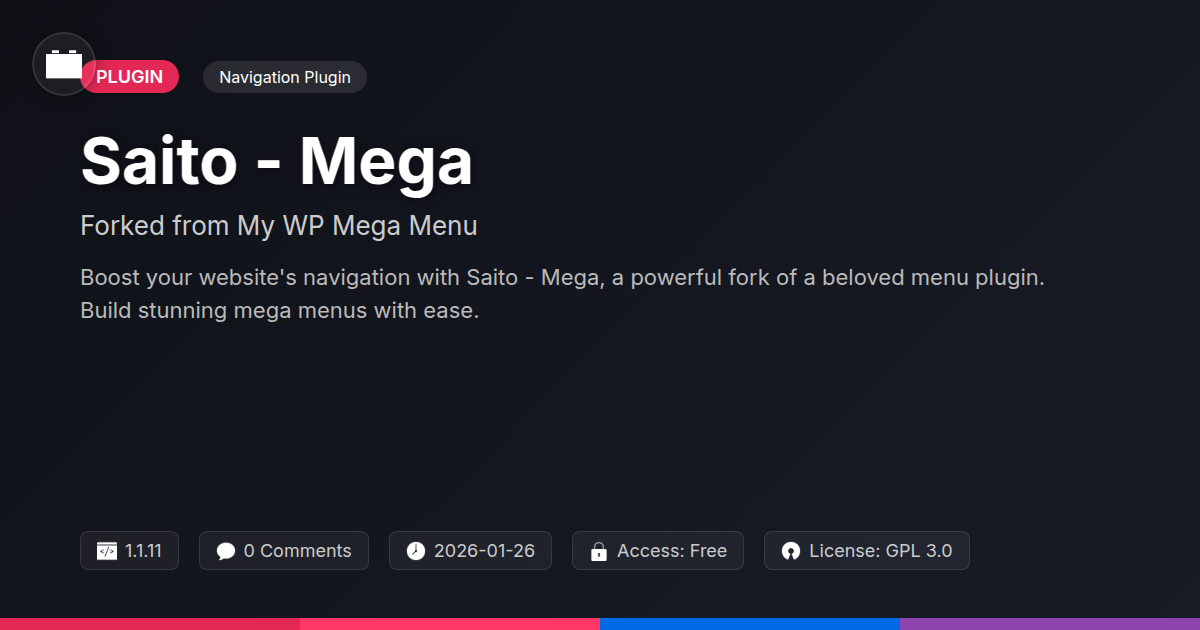 Tired of menu builders that leave you wanting more? Meet Saito - Mega. It’s not just another plugin; it's a revolutionary forked solution. Built on a proven foundation, we’ve supercharged it for ultimate flexibility. Saito - Mega offers unmatched ease of use. You get serious power without the complexity. Its customization options are second to none. Developers will love its approach. It simplifies complex navigation structures with ease. Create visually stunning mega menus effortlessly. Build highly functional navigation that users will adore. Other solutions clearly missed a few crucial details. This mega menu plugin is your custom menu builder. Experience truly flexible navigation. Discover powerful features thoughtfully implemented. It’s a developer-friendly custom menu builder.