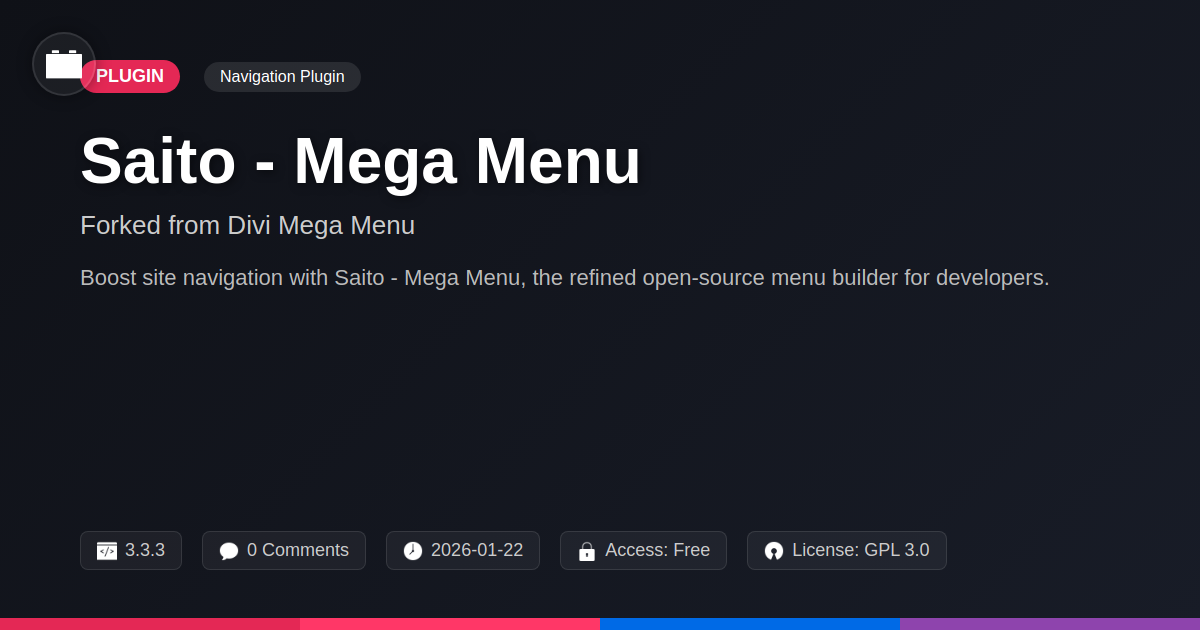 So there you have it. Saito - Mega Menu. It’s the sophisticated, yet refreshingly straightforward, answer to your website’s navigation woes. We know, we know, another menu plugin. But before you roll your eyes so hard they get stuck in your skull, consider this: how much time have you actually spent wrestling with menus that seem to have a personal vendetta against usability? Hours? Days? Enough time to learn a new language, perhaps? Saito is here to give you that time back. It’s the open-source spirit you love, wrapped in a package that’s actually designed for the way you, the developer or agency, work. No more fighting with stubborn dropdowns or dealing with code that looks like it was written by a caffeinated squirrel. We’ve taken a solid base, polished it to a mirror shine, and added the thoughtful touches that make a real difference. It’s about creating navigation that’s not just functional, but an actual enhancement to the user experience. So, whether you’re building the next big thing for a client or just trying to make your own digital playground less of a labyrinth, Saito is your go-to. It's powerful, it's flexible, and best of all, it's built with a community-first ethos. Give it a spin, and reclaim your development hours. Your clients will cheer, and your sanity might just thank you.