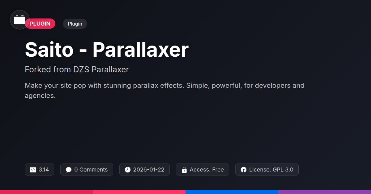 So, there you have it. You've journeyed through the dazzling world of Saito - Parallaxer, a tool that proves you don't need to sacrifice your sanity to make your website dance. We've seen how this open-source marvel, a testament to the collaborative spirit of digital craftsmanship, takes the magic of parallax and makes it accessible, controllable, and downright fun. No more wrestling with arcane code snippets or crying into your keyboard. This fork is for the developers who appreciate robust architecture, the agencies who need to wow clients with flair, and the open-source enthusiasts who understand the power of community-driven innovation. It’s about taking your users on a journey, not just presenting them with a static page. It's about creating an experience that lingers, that engages, that makes them feel something. Because let’s be honest, in the crowded digital landscape, ‘forgettable’ is the fastest way to irrelevance. Saito - Parallaxer isn't just adding visual flair; it's a strategic tool for capturing attention and holding it. It’s the difference between a visitor who clicks away in boredom and one who explores every nook and cranny of your digital creation. So, go on, give your website the dynamic personality it deserves. Embrace the scroll, master the depth, and watch your engagement metrics thank you for it. Your quest for a more captivating online presence just got significantly easier – and a whole lot more fun.