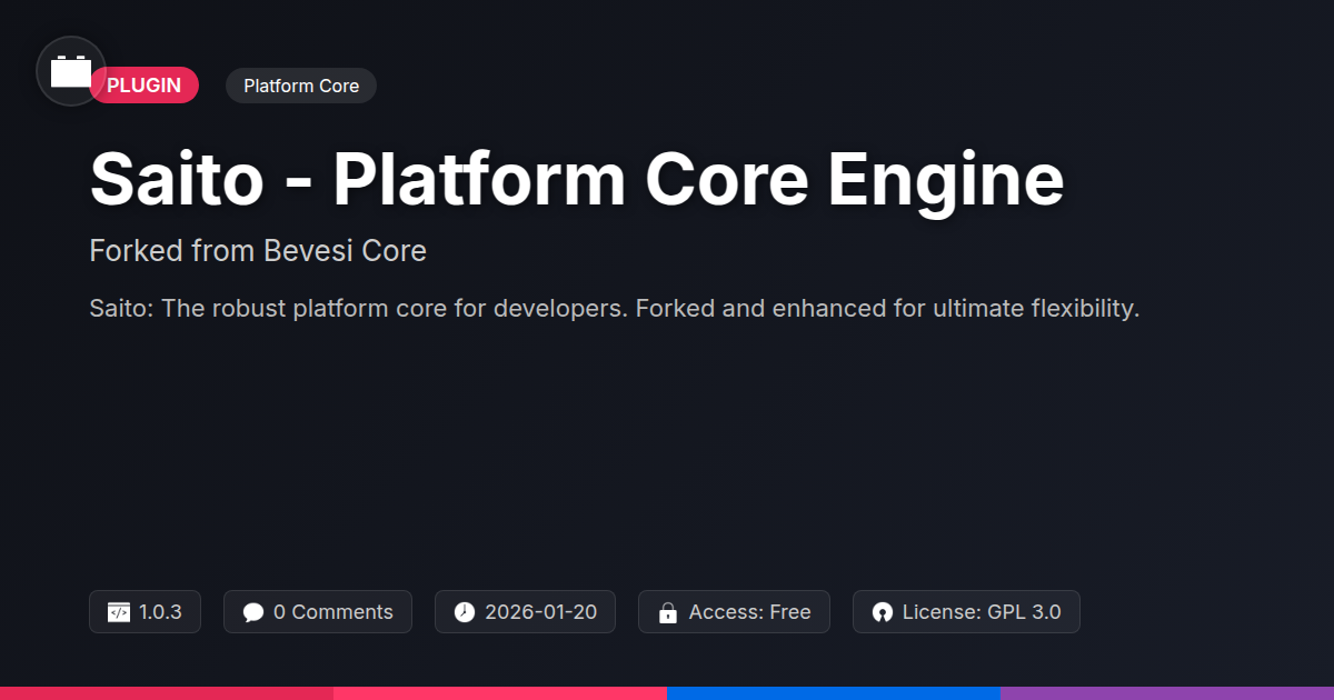 Ever stared blankly at a project, wondering how to inject some serious oomph without reinventing the wheel… again? Do you find yourself idly sketching elaborate structures on napkins, only to realize you just need a solid foundation to build upon? Well, stop doodling and start developing! You're probably here because you’re a digital architect, a code conjurer, or perhaps just someone who appreciates a well-crafted engine humming beneath the hood of something magnificent. Forget the days of patchwork solutions and endlessly wrestling with clunky frameworks. We've all been there, haven't we? That moment when you're neck-deep in a project, coffee turning cold, contemplating the existential dread of starting from scratch. But what if there was a way to leverage a robust, battle-tested core, tweaked and refined for your modern masterpieces? Enter Saito - Platform Core Engine. This isn't just another plugin; it's a fork, a descendant of excellence, built for those who demand power, flexibility, and a touch of open-source rebellion. Think of it as your trusty steed, ready to carry your boldest digital visions to glory. We’re talking about a platform core that’s been born from a legacy of solid engineering, now sharpened and ready for your ingenious creations. Ready to ditch the duct tape and embrace a foundation that actually… works? Let's dive in.
