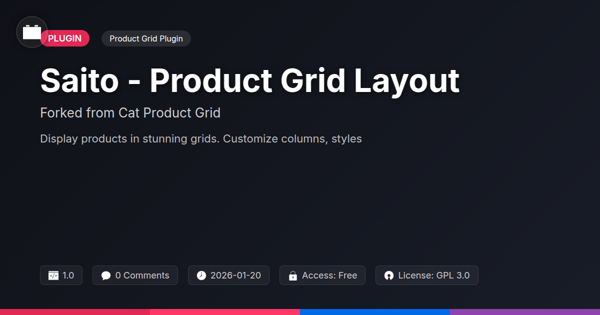 Tired of those sad, uninspired product grids? Meet Saito. It’s not just another grid plugin. Saito is a thoughtful evolution. It builds on a solid foundation. Think of it as inheriting greatness, then making it better. It offers the flexibility you crave. Your wildest design dreams are now possible. It's also simple. You won't be pulling your hair out. Saito lets you take control. No more wrestling with code. Imagine an intuitive tool. It's adaptable for any store. Key features shine. You get granular column control. Adjust image sizes easily. Seamless filter and sort integration is here. Saito truly outshines the defaults. Why stick with basic options? Saito is for developers who value precision. You get efficiency and power. It simplifies creating stunning product pages. Wave goodbye to development headaches.